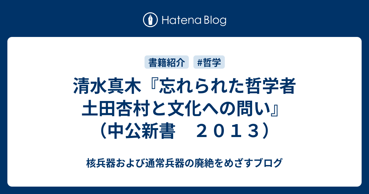 これは、詳細で元の投稿訪問用の 清水真木 忘れられた哲学者 土田杏村と文化への問い 中公新書 2013 核兵器および通常兵器の廃絶をめざすブログ のスニペット画像です。 ここに